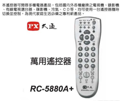 PX 大通 五合一萬用遙控器 RC-5880A+ (大按鍵) 公司貨